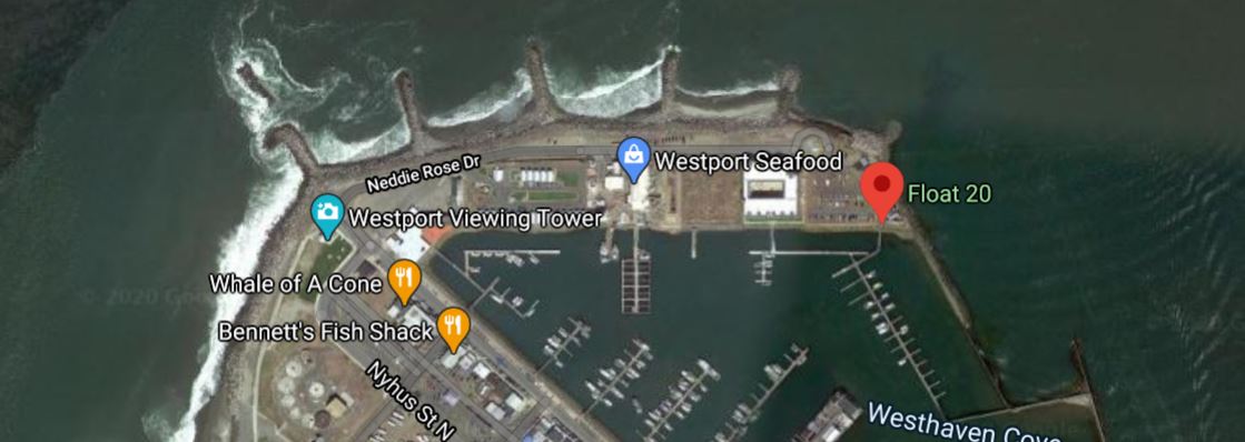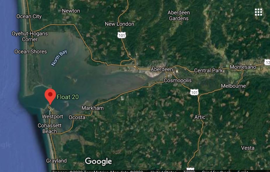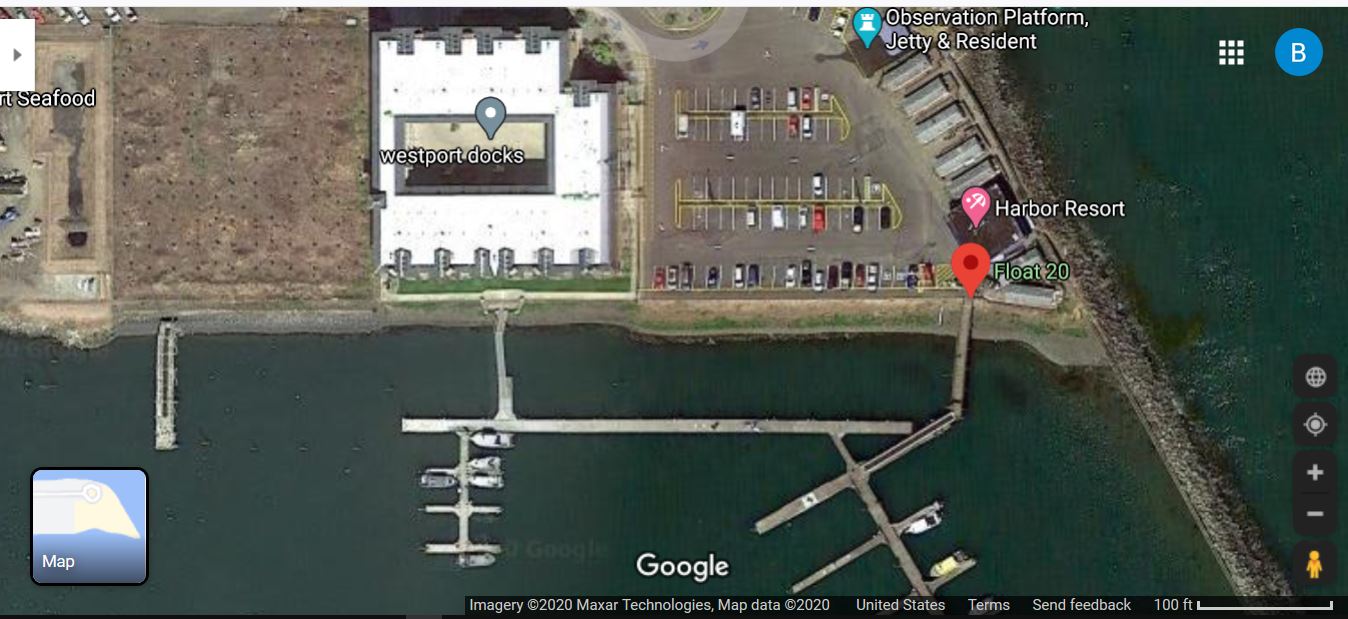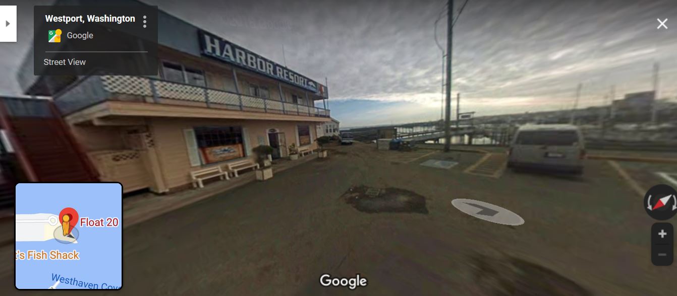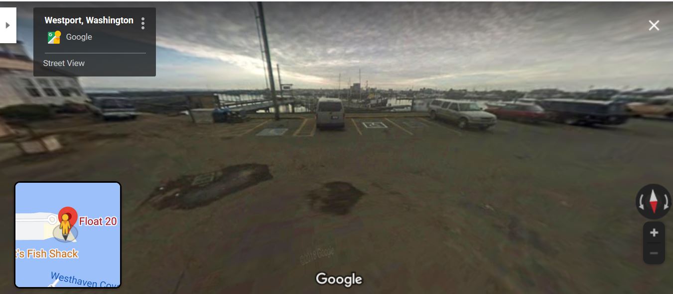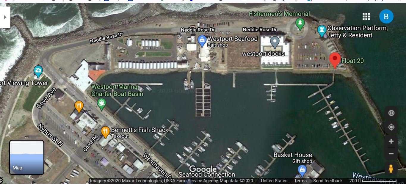 For the trip to Pier 20 in Westport we always have a pit stop in Montesano. The Chevron station is a good place for coffee, gasoline and a bathroom stop. Montesano makes for a good break before heading south to Westport or north to the clamming beaches near Ocean Shores, WA, Westport has many amenities we like. There are 2 public restrooms one in Westport just off the main drag, the other right at Pier 20. There is also a small store with a parking lot at the entrance of the pier. The store will rent gear and the parking lot is for visitors. On the piers there are plenty of bollards to tie your gear too. If your hands or gear need a quick rinse there are many garden hoses on the piers to rinse gear. Just know the hoses probably belong to the boat owners. Hear are a few pics of maps and location of Pier 20.