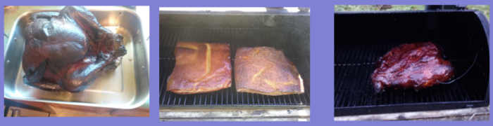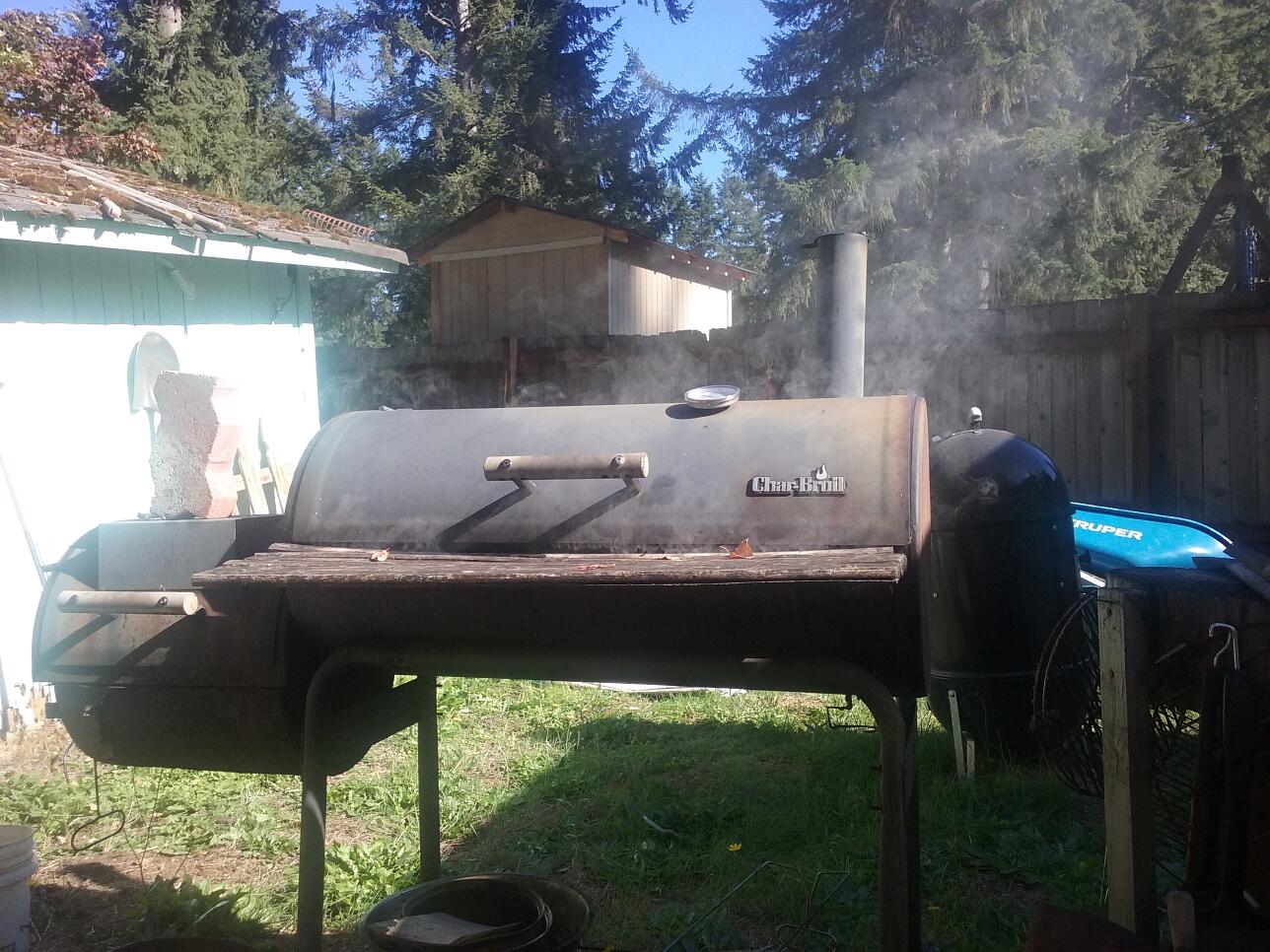 A little section dedicated to one of our favorite pastimes, Barbeque Grilling and Smoking. Inspired by a background in restaurant work, 8 years at two locations, and some tasty smoked salmon. We were determined to become grill masters. Having said that we have purchased our fourth 22" Weber grill, our second Texas offset smoker (with a replaced firebox) a couple gas grills - that we hated, and a really nice Weber water smoker (LOVE IT). You will find the menu links to the right with various items of concern. With included pictures. The info comes from various sources and self teaching. So lets get grilling! The stainless steel pans can be use for smoking your own BBQ sauce. Pick one doctor it up and smoke it for a few hours. Our favorite blend of smoke is half Alder wood and half Apple wood.. That is unless its a steelhead or salmon on the grill (Texas offset smoker) then we only use Alder.
