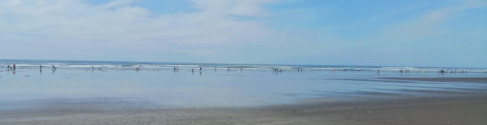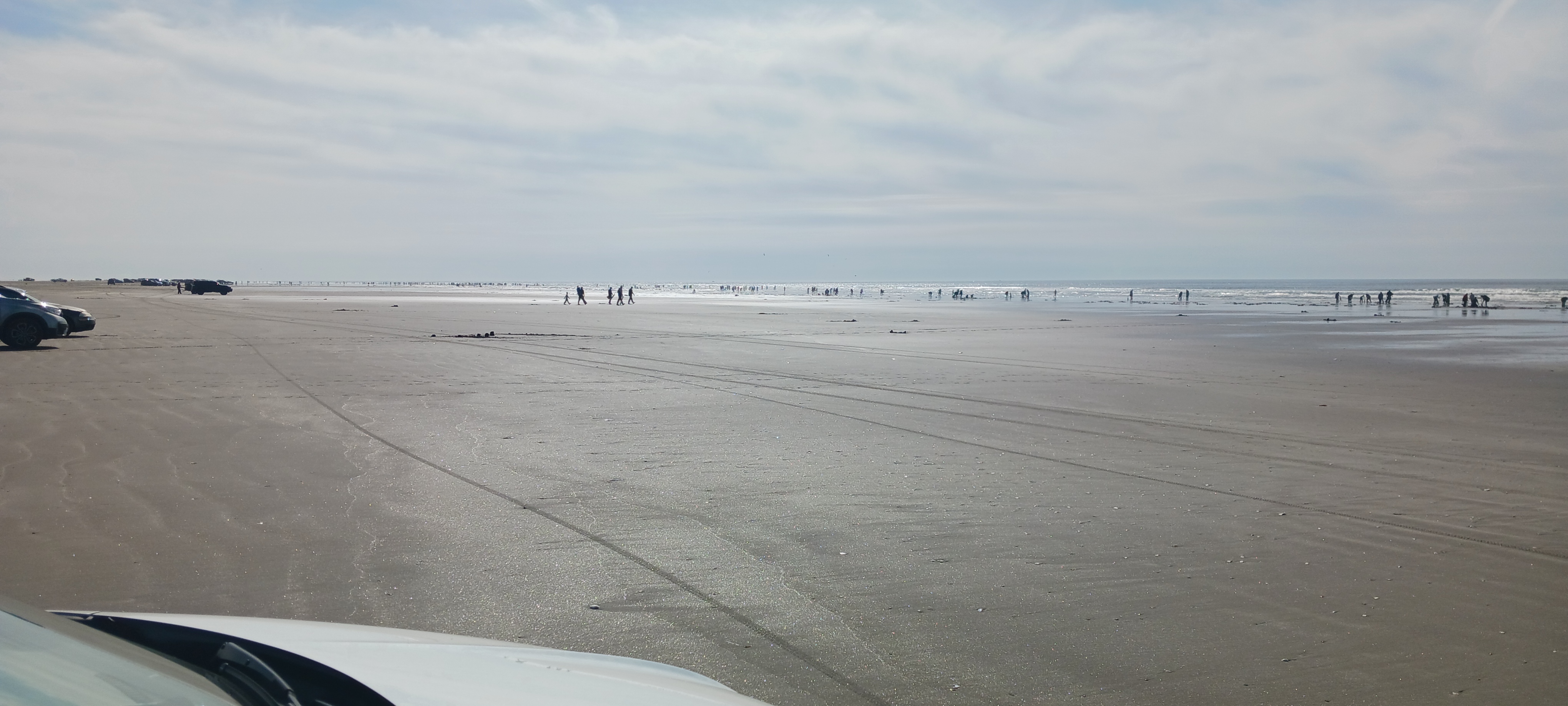 A day at the beach with the new 500 caliber semi auto clam howitzer. Pounding and poking the surf line with the high dollar red handled golf club thingy bought at the Aberdeen Goodwill for a dollar two ninety eight. Them furry nosed Siliqua patula marine bivalve molluscs a.k.a. Razor Clams were all waiting for us, teasing us with the little dimple shows. Followed by a blast from the 500 caliber (5 inch) clam howitzer and POP there it is. Sometimes the fuzzy nose of the desperately digging bivalve will be poking out in the bottom of the hole the clam howitzer just blasted open. The harvester, like myself, will dive madly to the ground, getting covered in sand and reaching up to a shoulder deep to grab the victim. Other times the fuzzy nosed mollusc can be seen in the plug of sand the semi automatic 15 round (limit) clam howitzer blasts out of the surf on to the ground. The fury of the clam diggers is reminiscent of the Pixar movie with seagulls all diving on the same morsel of food, echoing the sound of: mine, mine, mine mine, mine! In the fury of digging the limit is reached and the beautiful day on the beach comes to close is short order. Now its time to stop and head back out to the surf and rinse all the beach debris from the clams, gear and yourself - if possible. Load all the gear and bivalves into the beach rig and head to the house. Fortunately having the foresight to stop at Brady's for some smoked oysters and steelhead salmon I had something to munch on for the 3 hour trip home. It was a beautiful drive home, the mountain (Mt Rainier) was out and not a cloud in the sky.