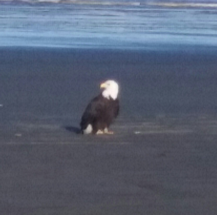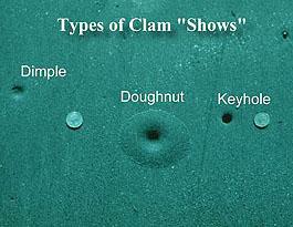 Here you can see the clams, one out of its shell laying in my hand to illustrate size. When searching for the Razor Clams on the beach they will produce a "Show". One of the images illustrates the "Shows", what one expects to see on the beach in the sand. Our first trip to the Mocrocks area we were greated by a Patriot guarding the beach, it seems he too liked the clams. Was not intimidated by visitors (us) to its beach. Day or night the digging is a blast! During sun light seeing the little kids with parents is the funnest. "Daddy!, daddy! theres one!" exclaimed the little girl. Wow dad was being w-o-r-e o-u-t by the kids. At night as the joke goes, hey where'd ya park the car. Not uncommon to see cars with flashing LED lights on the dash to help the owners find them. Pumpkin lanterns, flash lights, and head lamps all help. But then again so do co-operative clams.