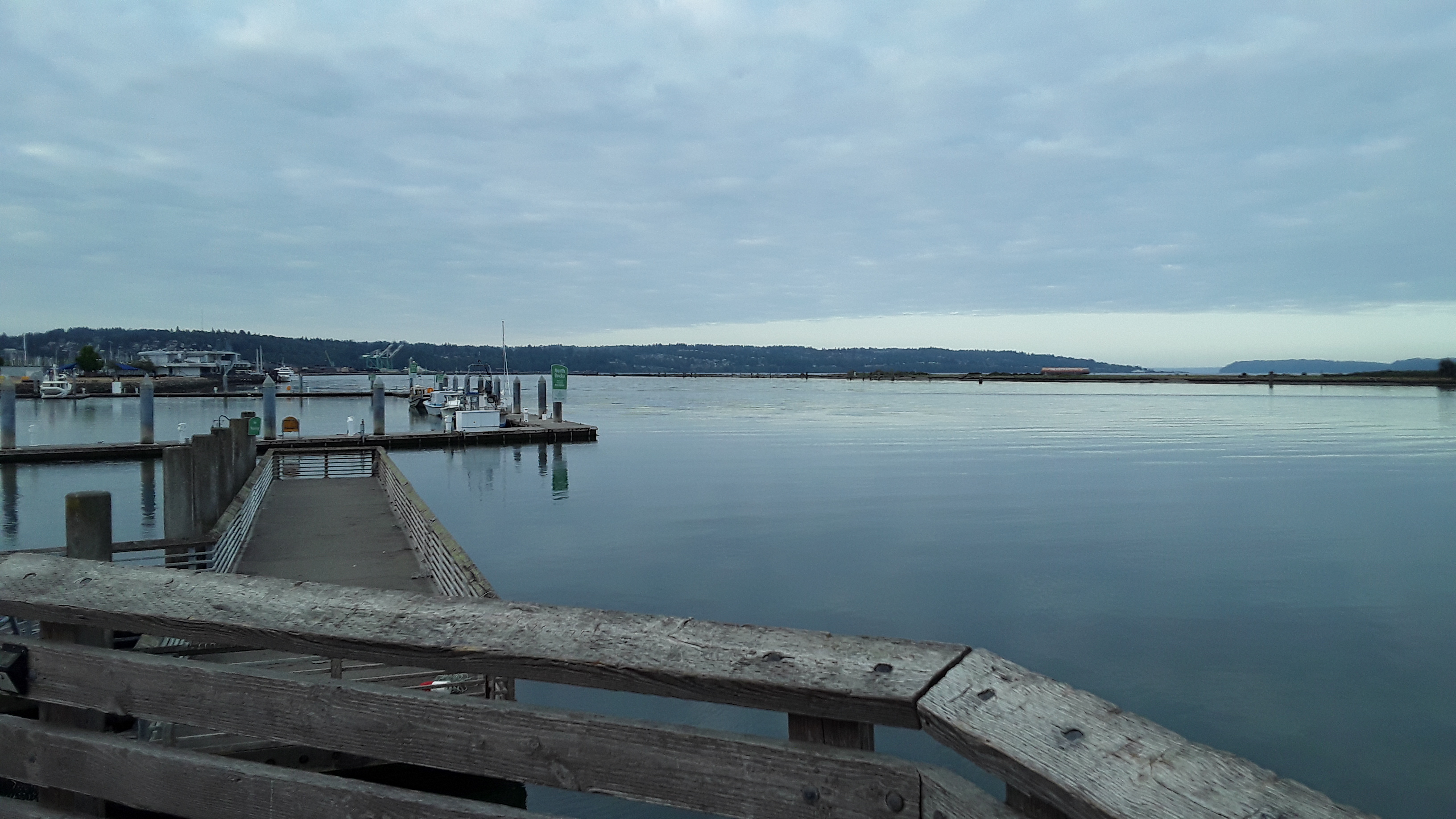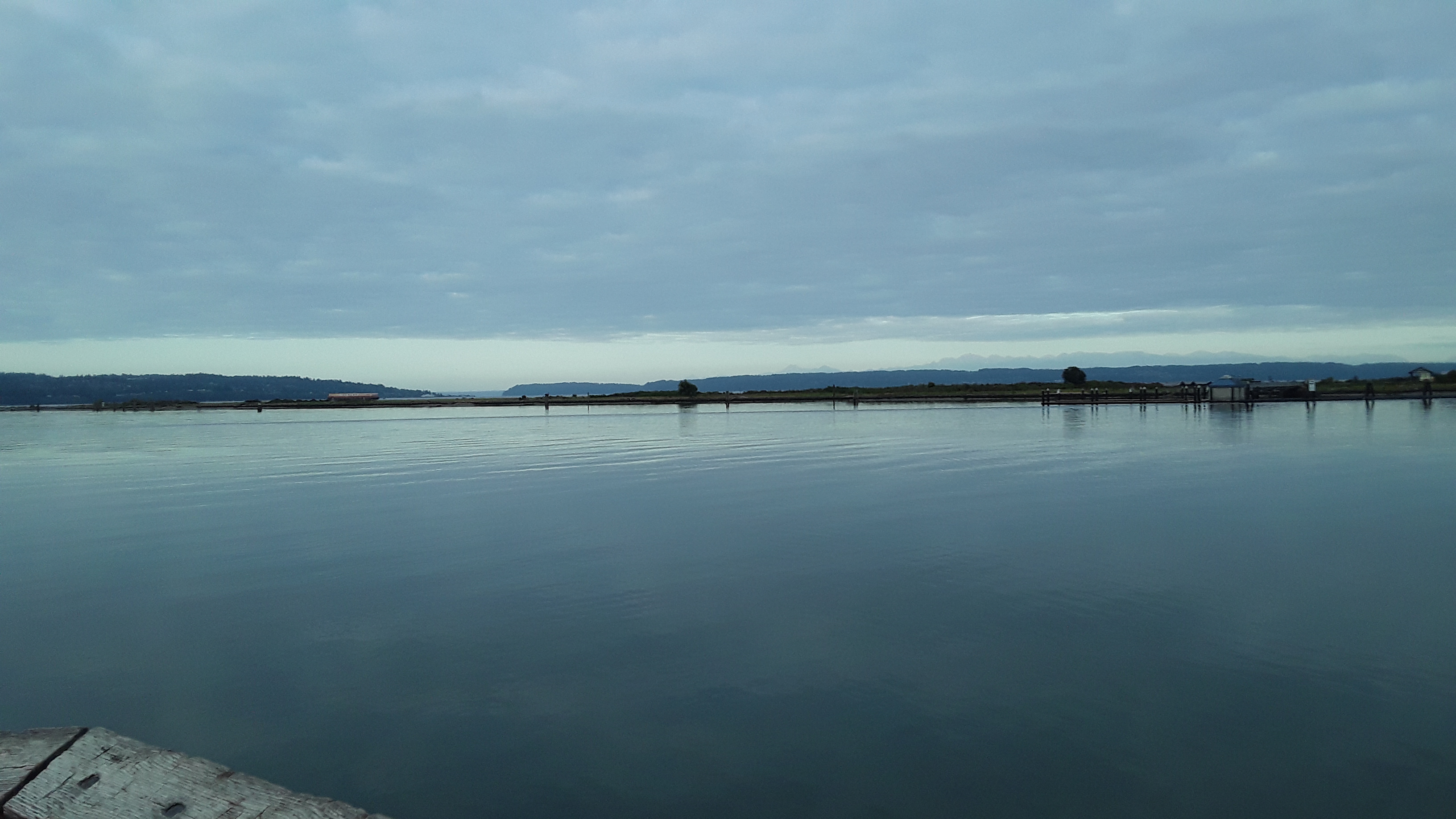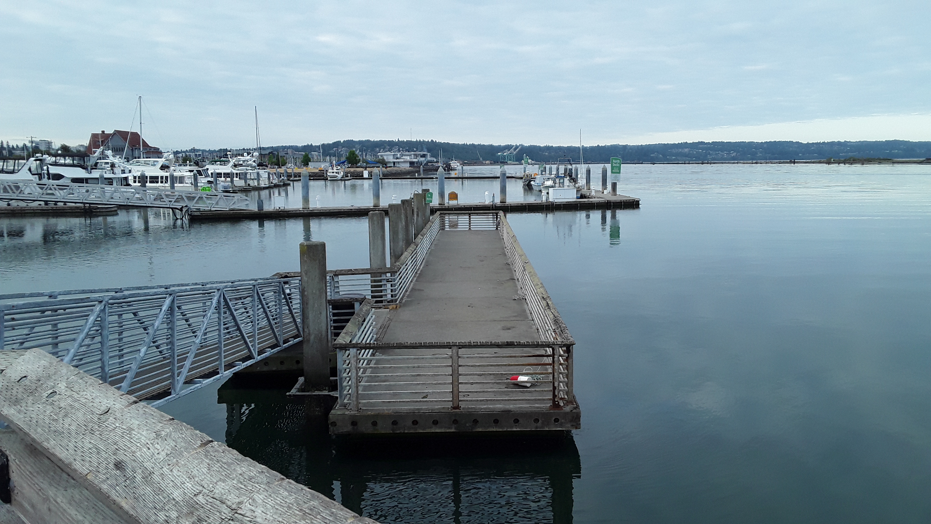Just north of the Navy base in Everett is the 10th Street Marine Park Pier.. . WDFW advertises it as a good spot. The pier requires a salt water license to fish off of it. It has a public a bathroom making it family friendly. For the adventurous there is a ferry that goes over to Jetty Island. A man made island from river dredging that is a local attraction.