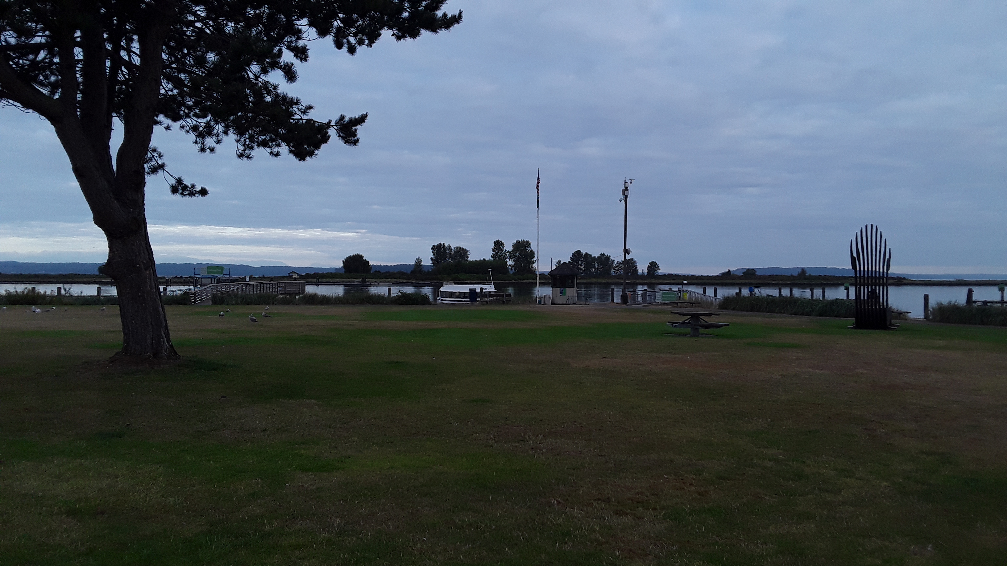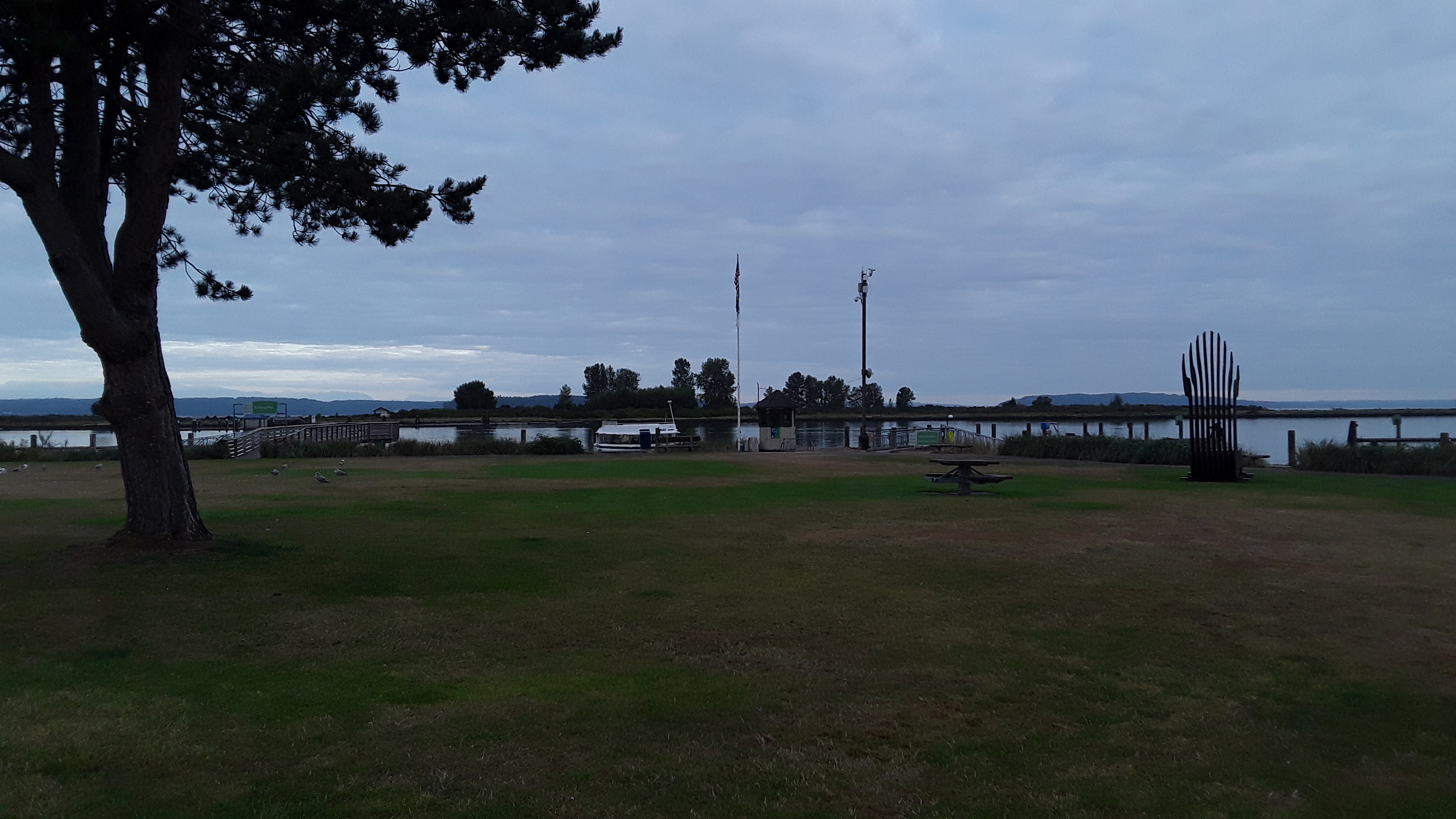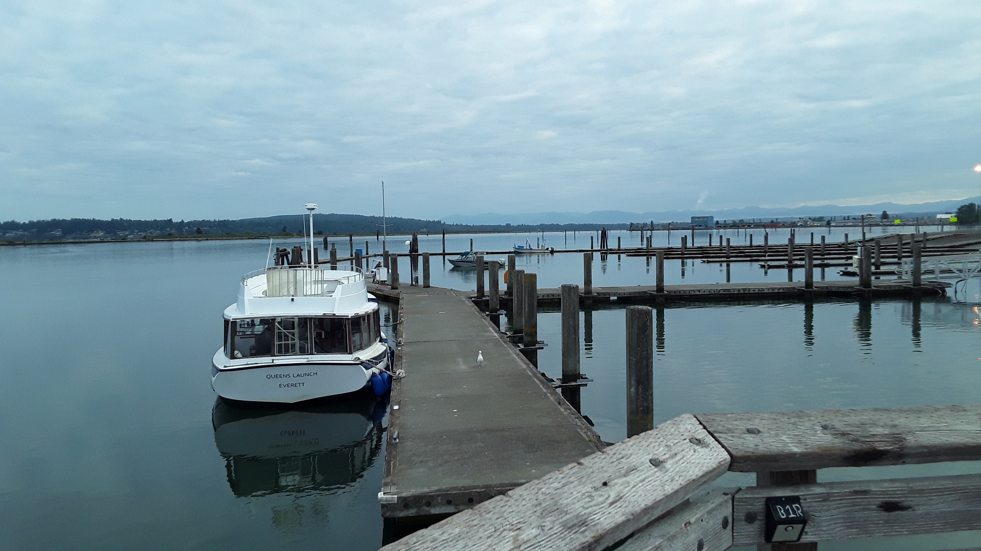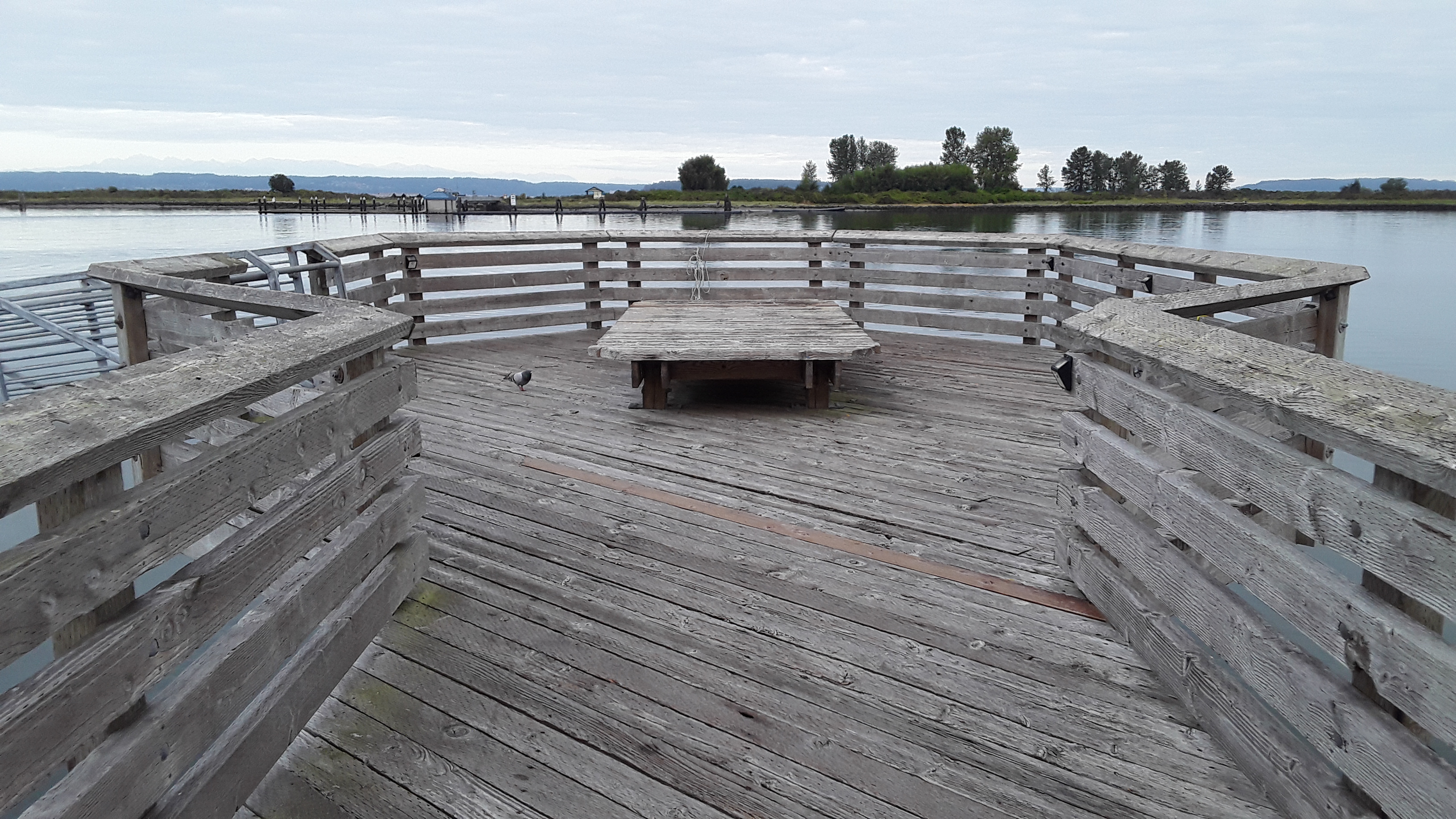 Just north of the Navy base in Everett is the 10th Street Marine Park Pier.. . WDFW advertises it as a good spot. The pier requires a salt water license to fish off of it. It has a public a bathroom making it family friendly. For the adventurous there is a ferry that goes over to Jetty Island. A man made island from river dredging that is a local attraction.
