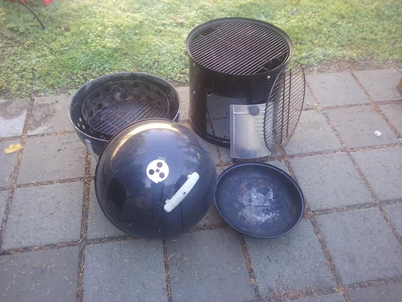 A little section dedicated to one of our favorite pastimes, Barbeque Grilling and Smoking. Inspired by a background in restaurant work, 8 years at two locations, and some tasty smoked salmon. We were determined to become grill masters. Having said that we have purchased our fourth 22" Weber grill, our second Texas offset smoker (with a replaced firebox) a couple gas grills - that we hated, and a really nice Weber water smoker (LOVE IT). You will find the menu links to the right with various items of concern. With included pictures. The info comes from various sources and self teaching. So lets get grilling! The stainless steel pans can be use for smoking your own BBQ sauce. Pick one doctor it up and smoke it for a few hours. Our favorite blend of smoke is half Alder wood and half Apple wood.. That is unless its a steelhead or salmon on the grill (Texas offset smoker) then we only use Alder.