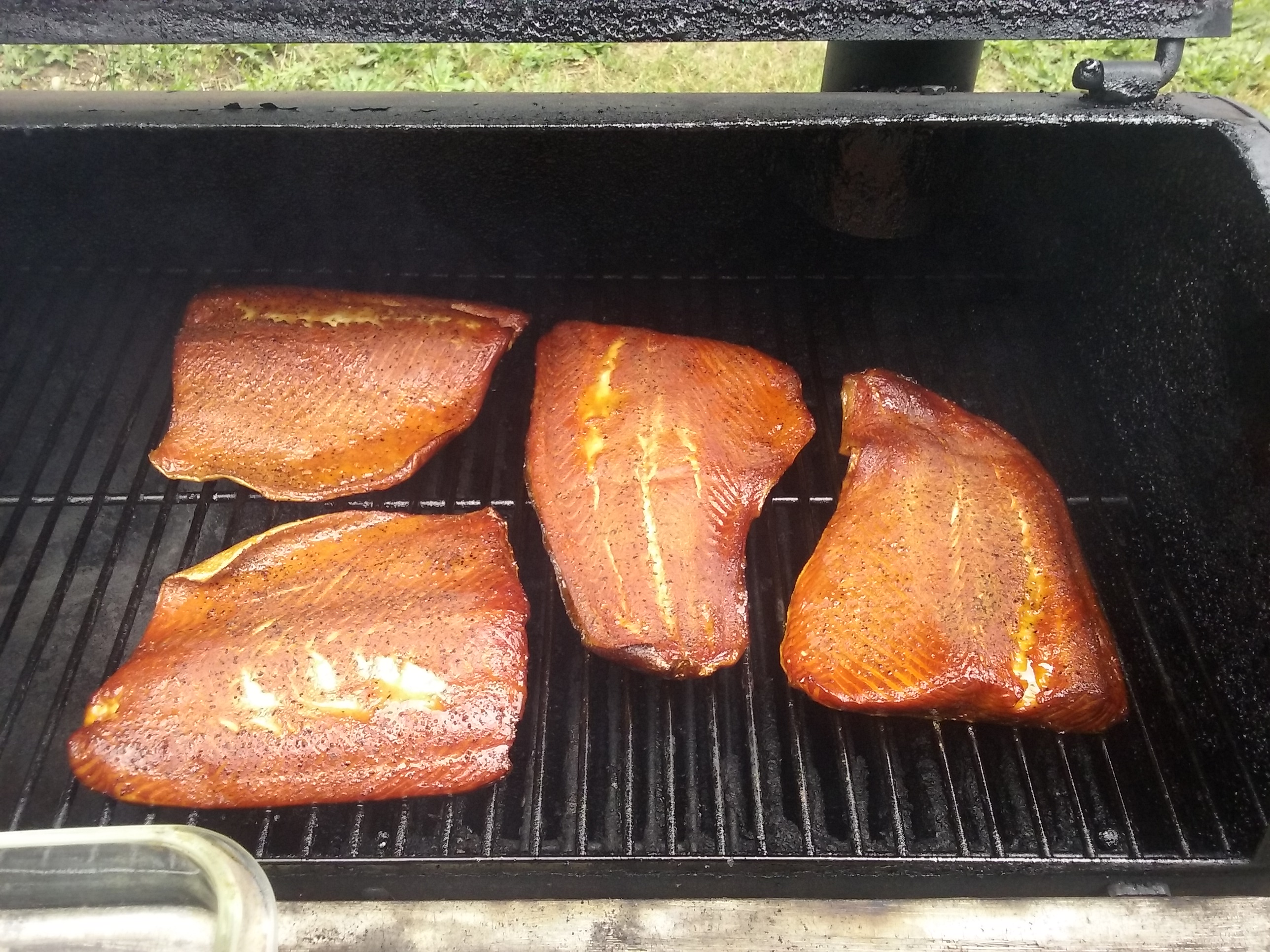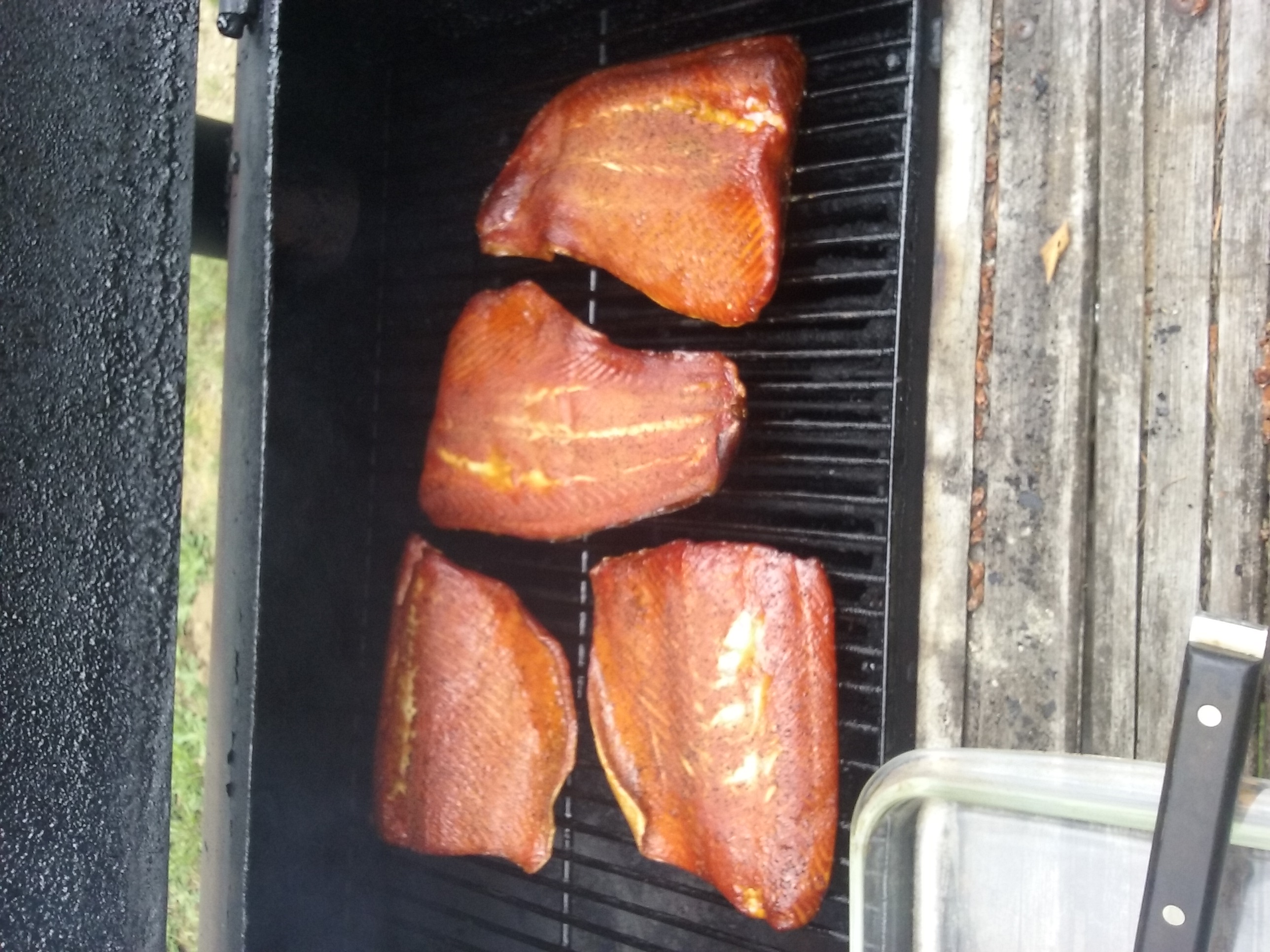 I like to pack the salmon in brown sugar over night in the fridge. Then rinse it and rub it with a rub and let it sit for an hour or so. Alder is my go to wood for salmon.