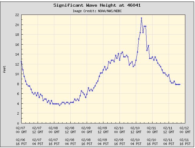 Key to understanding the waves is height and frequency. Nine foot waves every nine sconds are terrible. Three foot waves every twelve seconds are way better, especially for boating. A one to one ratio 9 feet high every 9 seconds or 6 feet high every 6 seconds are worse. It is the cycle between the waves that is important.